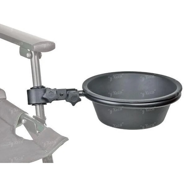 Zahvaljujući čvrstom nosaču (arm), posuda se lako pričvršćuje na stolicu i omogućuje vam organiziran radni prostor. Idealna je za držanje pripremljene prihrane, peleta, mamaca ili čak vode tijekom ribolova.