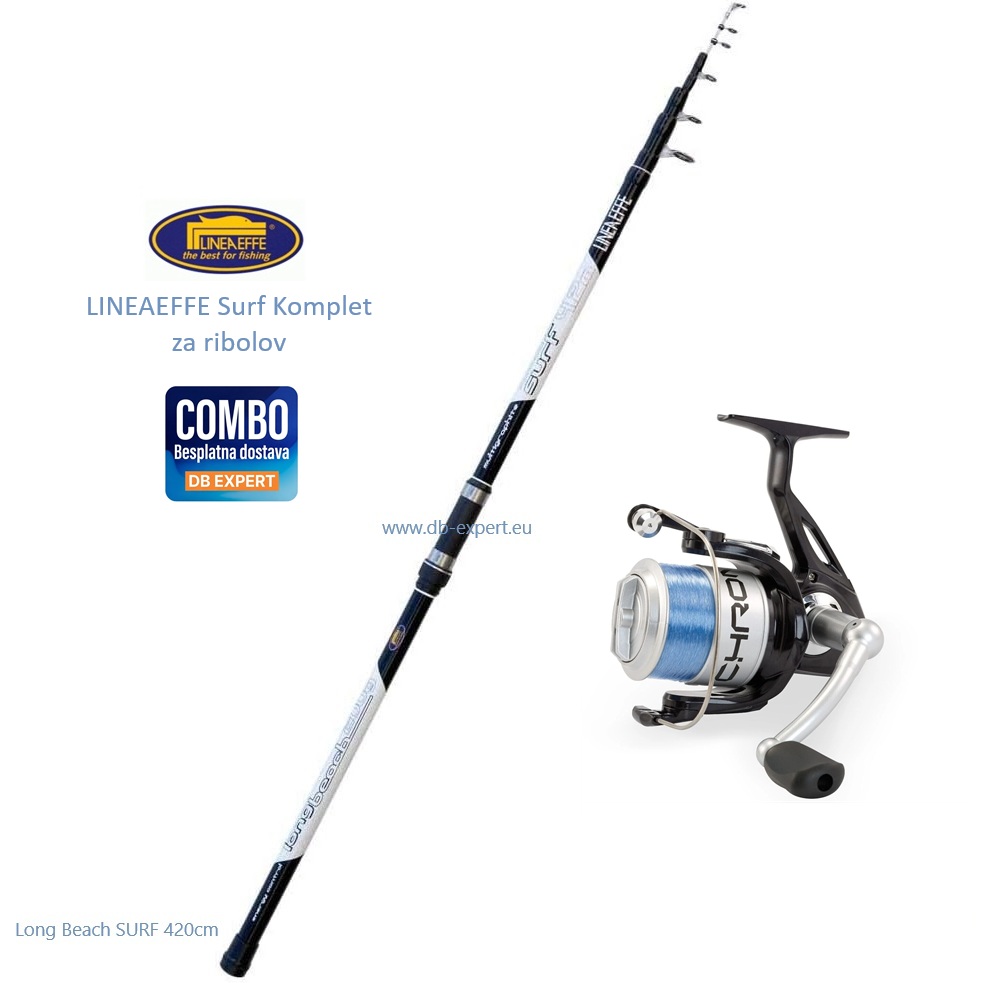 LINEAEFFE Combo Long Beach 420 cm + Rola CHRONO 450FD 5000 je najprodavaniji surf casting set u Hrvatskoj – savršen za lov orada, ovčica, zubataca, škrpina, trlji i drugih morskih predatora s obale. Ovaj komplet uključuje štap Lineaeffe Long Beach 420 cm / 200 g i rolu Lineaeffe CHRONO 450FD 5000 s već namotanih 200 m najlona 0,35 mm – spreman za ribolov odmah po otvaranju paketa!