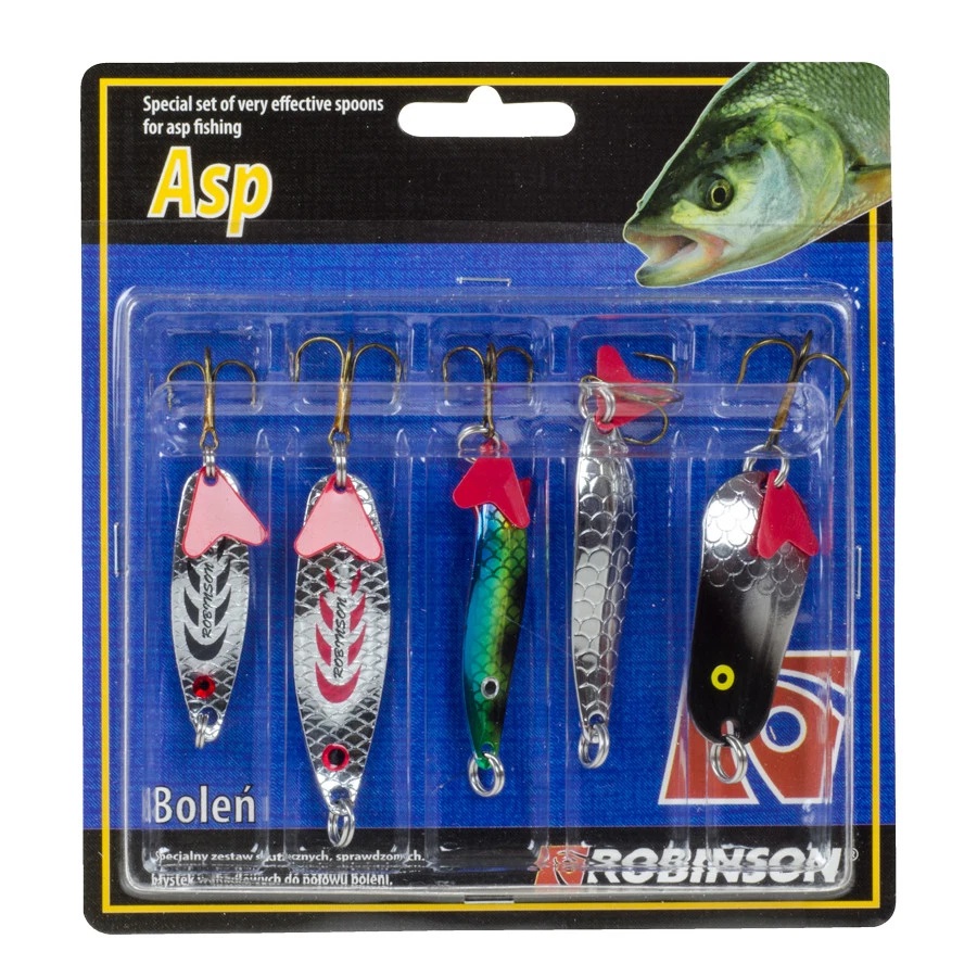 ROBINSON set žlica za bolena sastoji se od 5 različitih tipova varalica dizajniranih za uspješan ribolov predatora poput bolena i štuke. Ovaj set pokriva različite situacije na vodi – od brze površinske igre do dubljeg vođenja varalice.